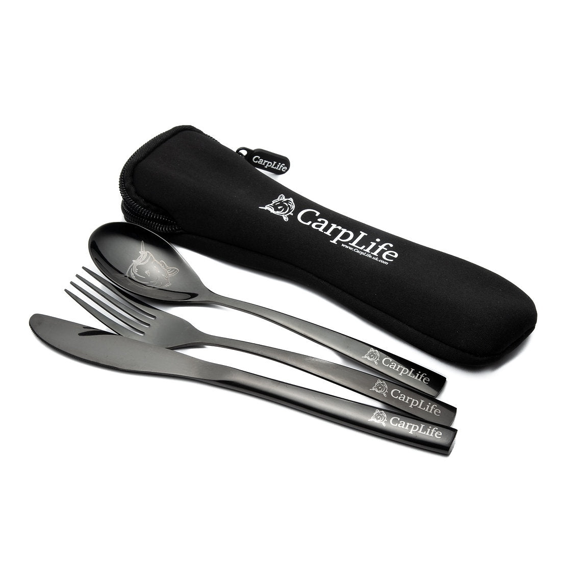Perfectly matching our popular etched tea spoon supplied with our thermal mugs, this cutlery set is great quality and looks absolutely amazing. Packed in a protective neoprene case with the CarpLife name and logo.