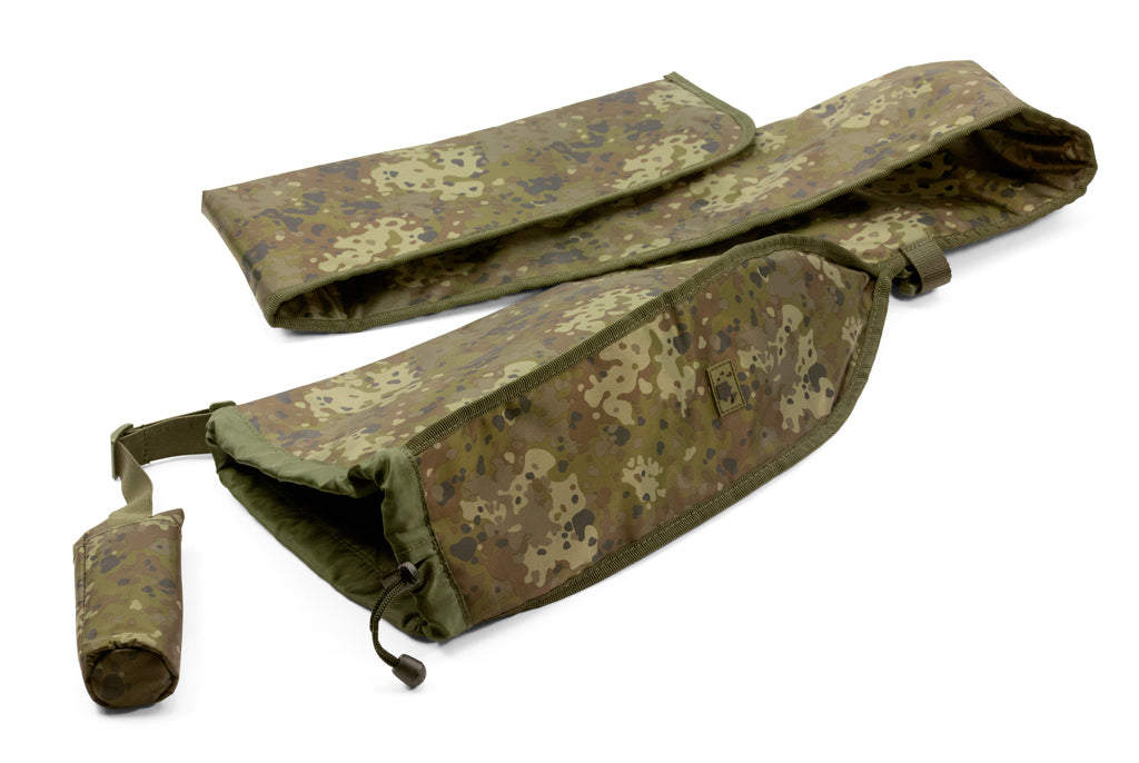 Made from a tough 210D PVC backed nylon in our new Camfleck print with a quilted lining inside. The sleeve provides protection for rods without bulk or weight. The sleeve will accommodate 50mm ringing and has a drawstring closure below the reel. The bottom of the sleeve features our original Tip Top with an adjustable elastic strap for extra protection and to keep the sleeve attached during transit.